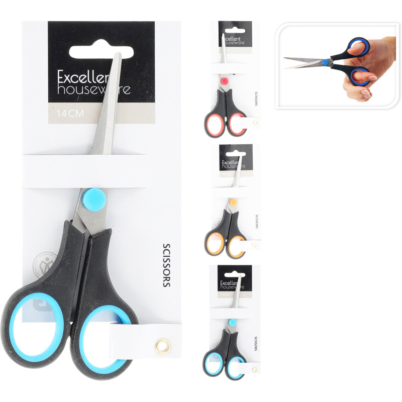 CISEAUX 14CM INOX S/CTE 3 COULEURS VENTE X 12