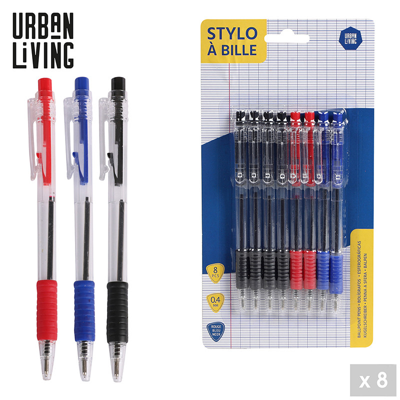STYLO BILLE X 8PCS S/CARTE 3 COULEURS VENTE X 24