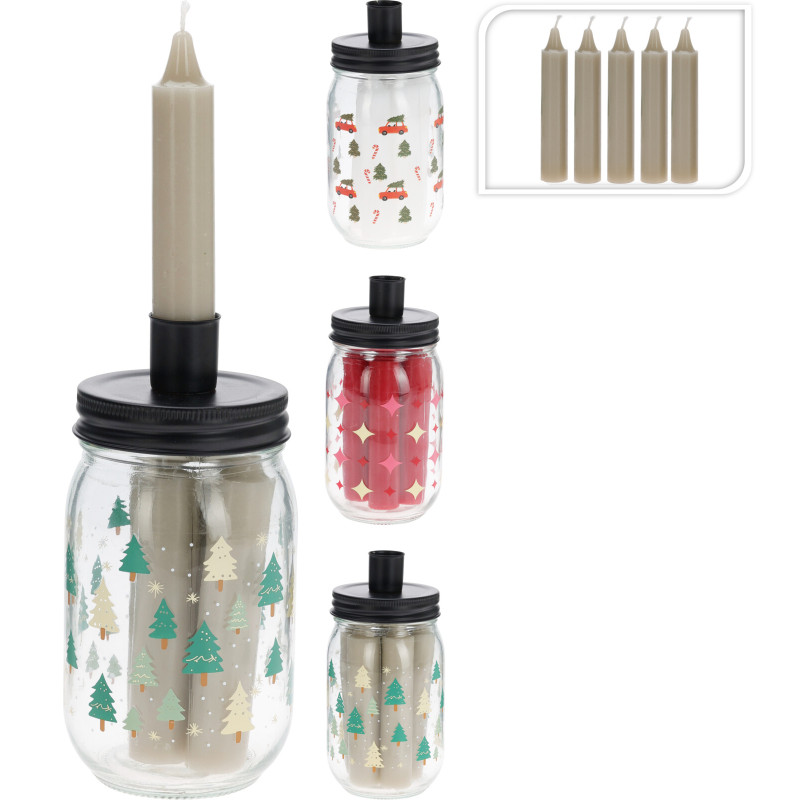 BOUGIE TABLE DANS BOCAL 3 ASSORT. VENTE X6