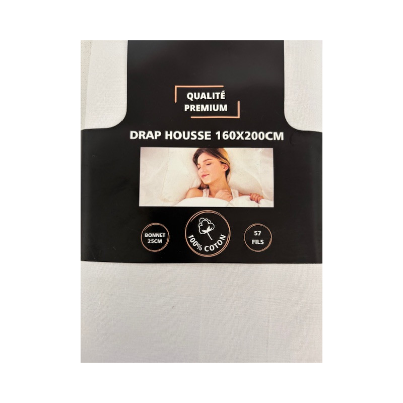 DRAP HOUSSE 160X200 COTON BLANC