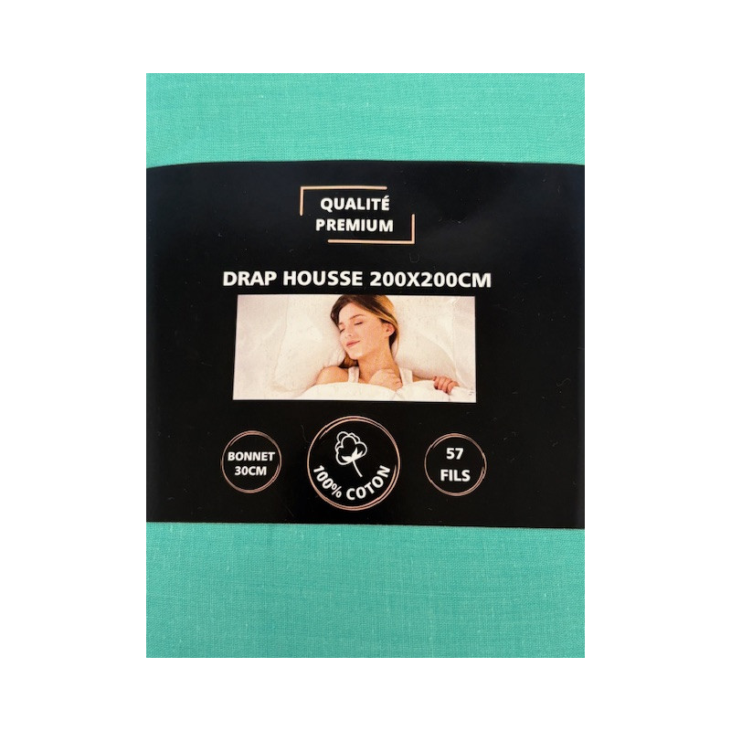 DRAP HOUSSE 200X200 COTON VERT BONNET 30CM