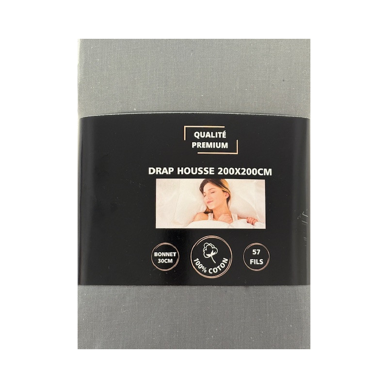 DRAP HOUSSE 200X200 COTON ANTHRACITE BONNET 30CM