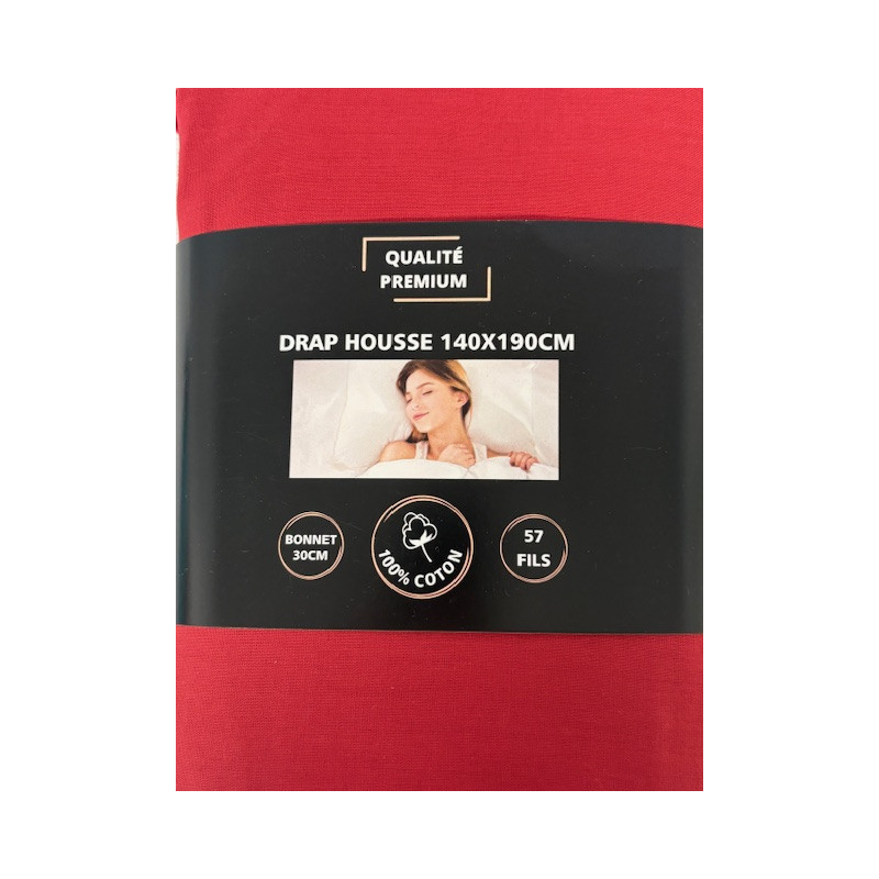 DRAP HOUSSE 140X190 COTON ROUGE BONNET 30CM