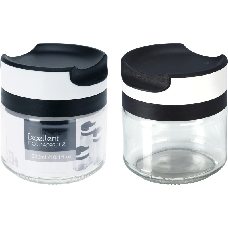 BOCAL VERRE HERMETIQUE 300ML NOIR/BLANC VENTE X12
